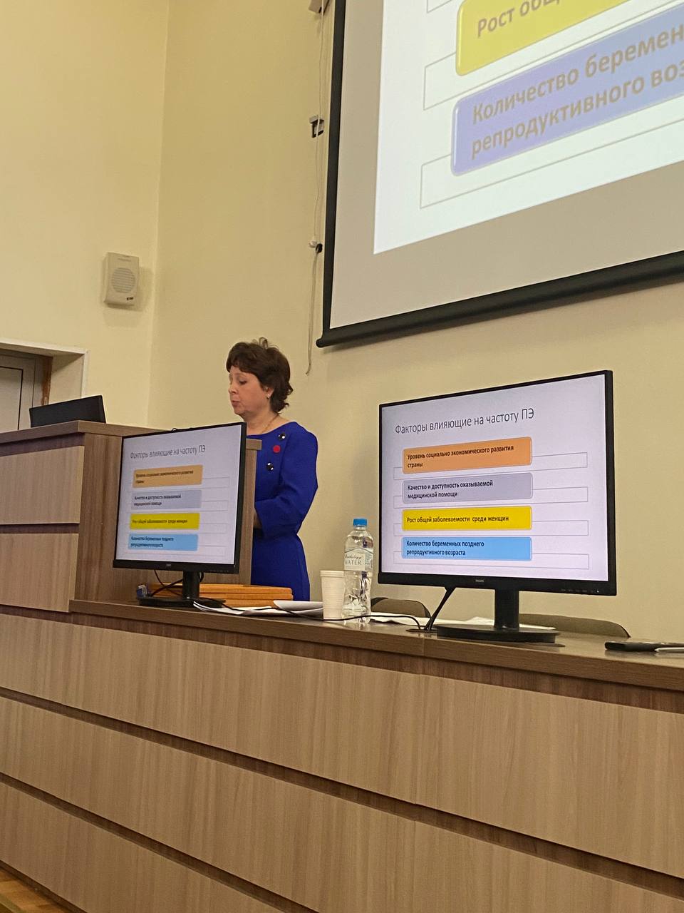 Татьяна Валерьевна Горячкина, врач акушер-гинеколог ГАУЗ «Клинический медицинский центр г. Читы» представил доклад «Гипертензивные расстройства при беременности. Роль акушерки в оказании неотложной помощи на амбулаторном этапе». В ходе доклада лектор подробно осветил актуальность темы, классификацию гипертензивных состояний, факторы риска, диагностику, клинику, лечение и осложнение, согласно клиническим рекомендациям, а так же диспансерное наблюдение групп риска.