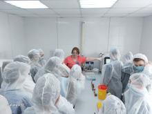 Первым на пути учащихся было посещение "святая-святых" хирургического стационара – операционной. Операционная медицинская сестра - Игумнова Марина Владимировна рассказала, как проходит ход операции, какая у каждого специалиста роль и ответственность во время хирургического вмешательства. Седякина Ольга Витальевна, медицинская сестра-анестезист показала школьникам, где хранится стратегический запас препаратов крови и работу дефибрилятора. Следующим на пути следования школьников было посещение клинико-диагностической лаборатории. Медицинский лабораторный техник, Федотова Наталья Павловна познакомила шестиклассников со спецификой работы, продемонстрировала современное оборудование, которое используется для обработки биоматериалов и получения результатов анализов. Она подчеркнула, что точность результатов зависит от человека: «Машины никогда не заменят здесь человека. Именно специалист увидит, что прибор показывает неточность». Наталья Павловна рассказала про главную жидкость в организме человека и провела мастер-класс по определению группы крови.