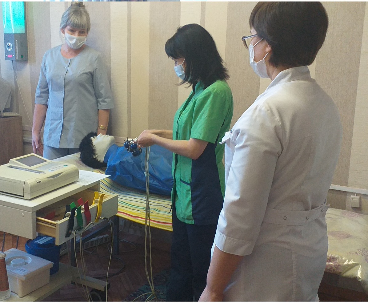 Работая по чек-листу «Проведение электрокардиографии» медсестры ФД, обновили, отработали практический навык и научились правильной работе техники регистрации ЭКГ.