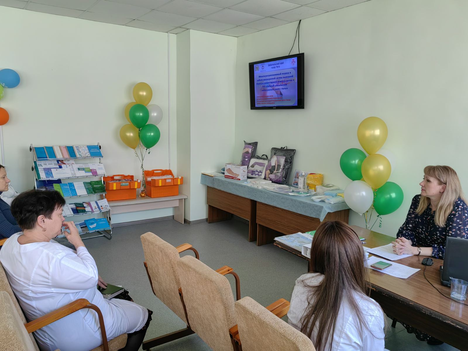Как и во многих медицинских организациях краевого центра Забайкалья в детском клиническом медицинском центре прошло запланированное в рамках проводимой в Чите 17-18 мая 2023 города Всероссийской научно-практической конференции «Непрерывное профессиональное развитие как важное условие обеспечения качества медицинской помощи» практическое мероприятие – мастер-класс «Реализация проекта «Оказание паллиативной помощи детям»». Специалистами детского поликлинического отделения №2 – главной медицинской сестрой Опиной Оксаной и медицинской сестрой по паллиативной медицинской помощи Панковой Ольгой - проведено 2 цикла мастер-классов: 5 мая для медицинских сестер города и 17 мая для специалистов края и гостей, посетивших всероссийское мероприятие. Всего информацию по организации паллиативной медицинской помощи детям г. Читы прослушали 19 человек согласно предоставленных заранее заявок.