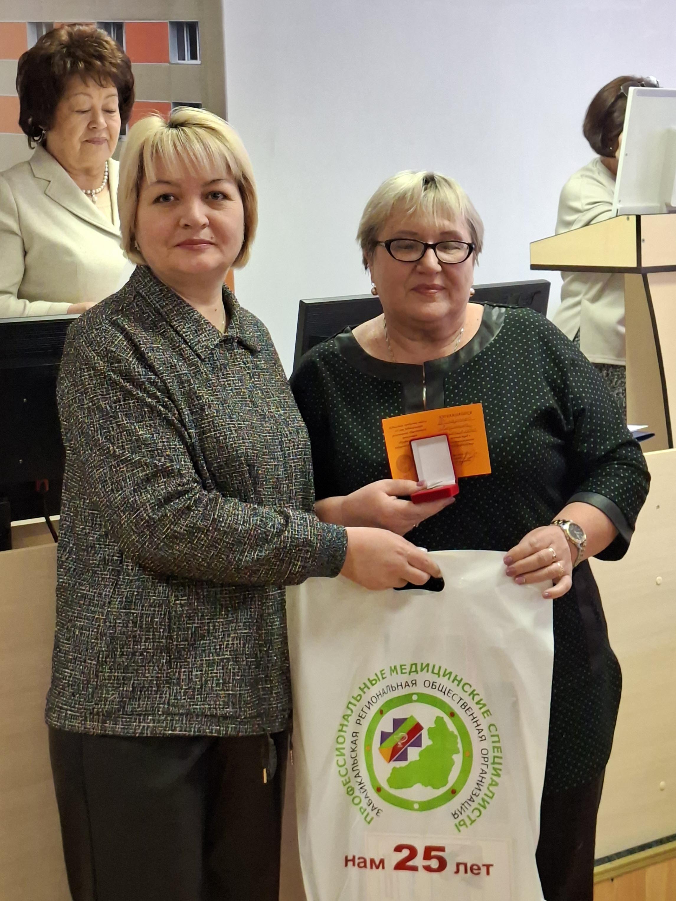 В рамках торжественной церемонии прошло награждение специалистов «Лечебное дело» и «Скорая неотложная помощь» за выдающиеся достижения в практической деятельности. Е.Г. Аранина, поздравляя с Днем фельдшера, выразила глубокую признательность специалистам за их профессионализм, самоотверженность и готовность прийти на помощь в самых критических ситуациях. Двадцать два лучших фельдшера были удостоены Благодарственного письма Законодательного собрания Забайкальского края и грамот Министра здравоохранения Забайкальского края. Семь выдающихся специалистов были награждены Серебряными медалями ЗРОО «ПрофМедСпец» и грамотами президента организации В.А. Вишняковой за значительный личный вклад в становление и развитие ассоциации. Девятнадцать человек получили Благодарственное письмо Президента ЗРОО «ПрофМедСпец» в знак признания их верности профессии и преданности общественной организации.